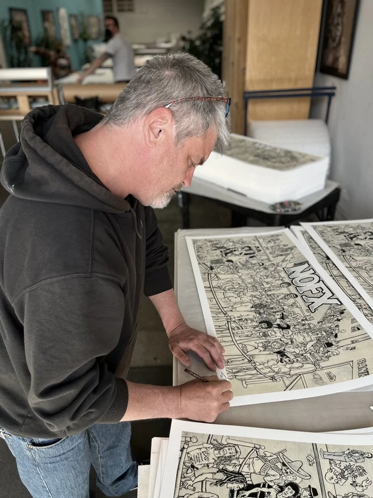 Longest Line was the first 12” EP that NOFX released on Fat Wreck Chords. This print encapsulates the original artwork for the 30th anniversary ‘re-imagined’ repress sleeve.